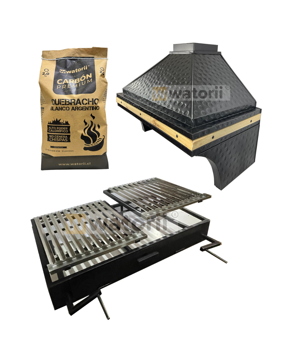 PACK CAMPANA MARTILLADA + PARRILLA W800 WATORII + 5 KG DE CARBÓN QUEBRACHO BLANCO ARGENTINO
