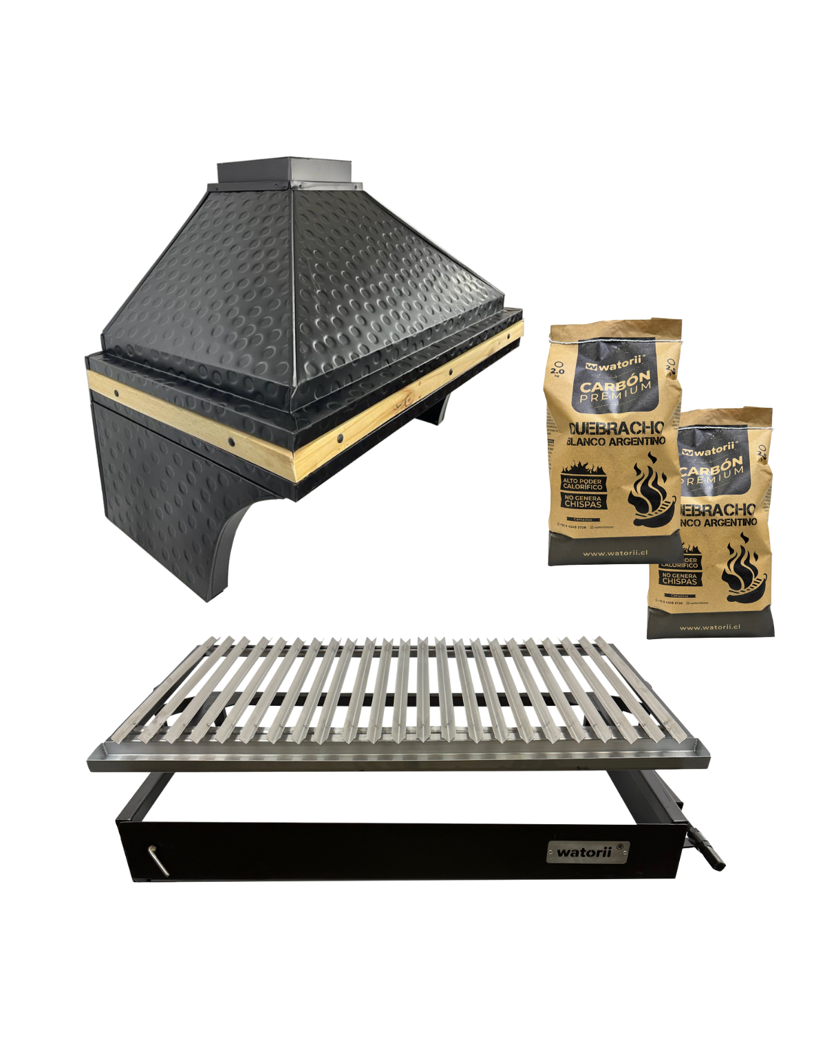 PACK CAMPANA MARTILLADA + PARRILLA BLACK IRON W800 WATORII + 5 KG DE CARBÓN QUEBRACHO BLANCO ARGENTINO